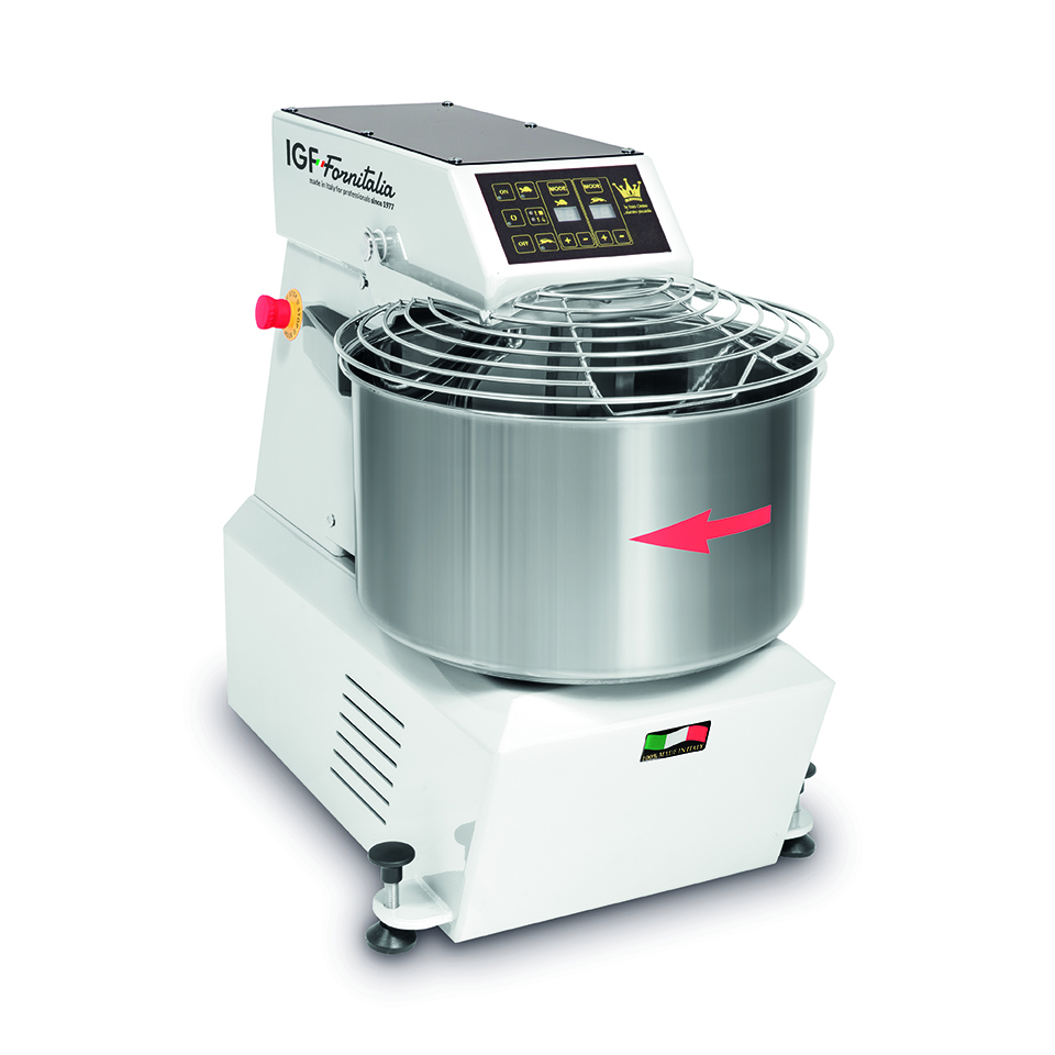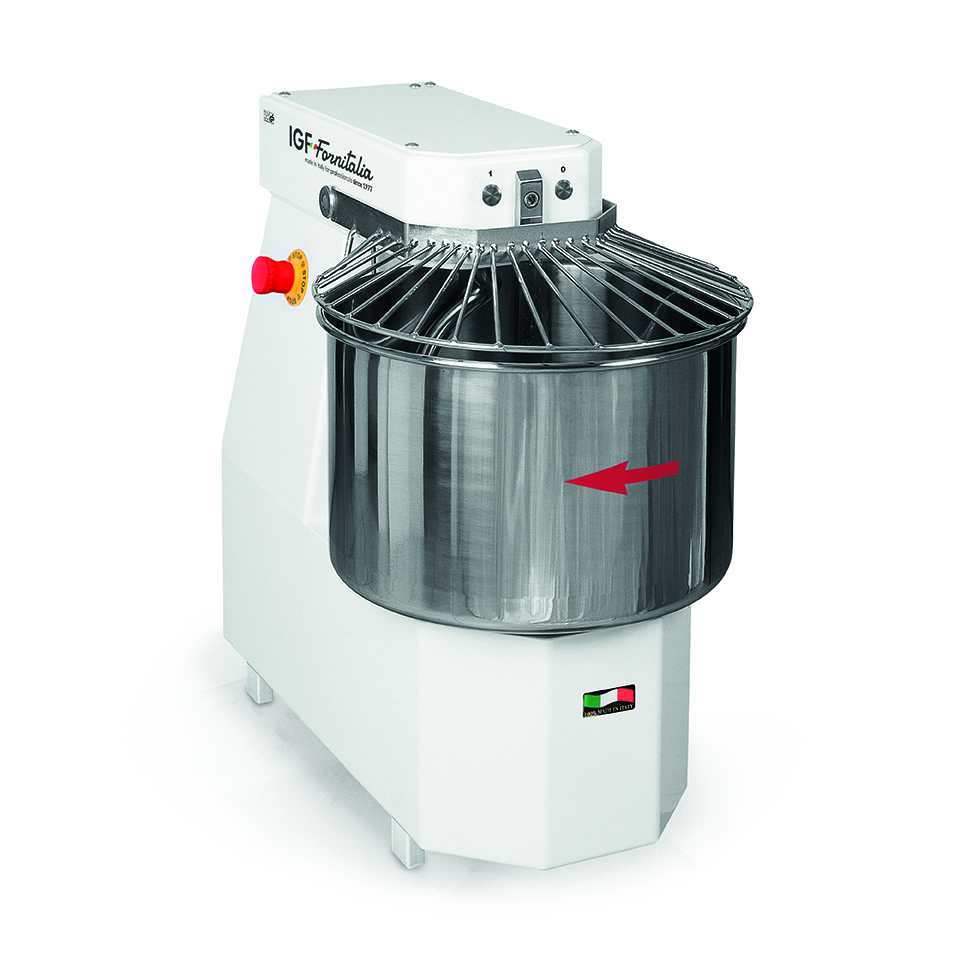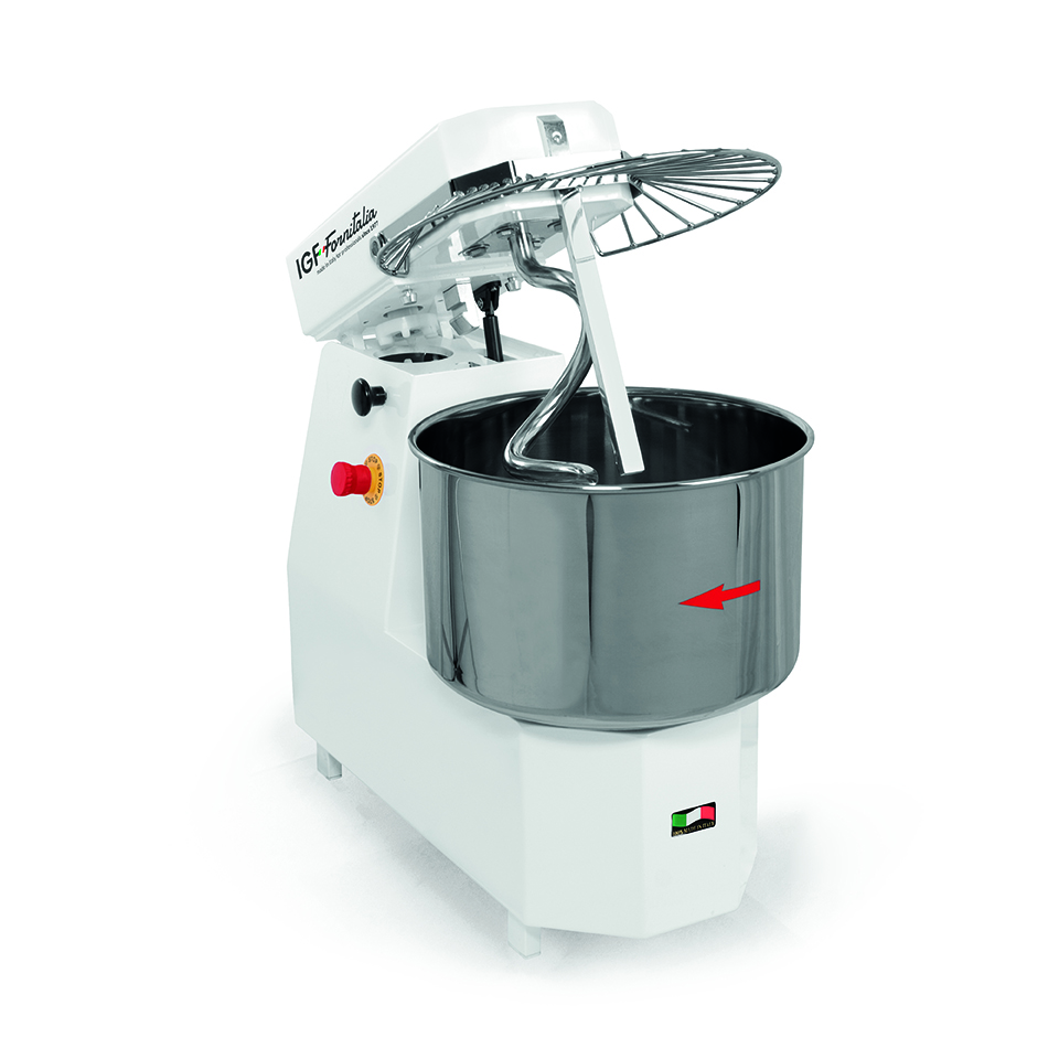 Estructura en carpintería de acero que otorga estabilidad a la configuración de la amasadora, con las preparaciones más desafiantes también cuba, espiral y asta para partir la masa de acero inoxidable, este último con molde rectangular para un mejor procesamiento de la masa. Mecánica optimizada con un reductor a baño de aceite. Adecuada conformación de la espiral que sigue las lineas de la cuba y la adecuada proporción cuba espiral-asta para partir la masa, en perfecta combinación para obtener la masa optima también en cantidades reducidas. Adecuada relación entre giros de cuba y espiral para un excelente procesamiento de la masa, reduciendo el calentamiento de la misma