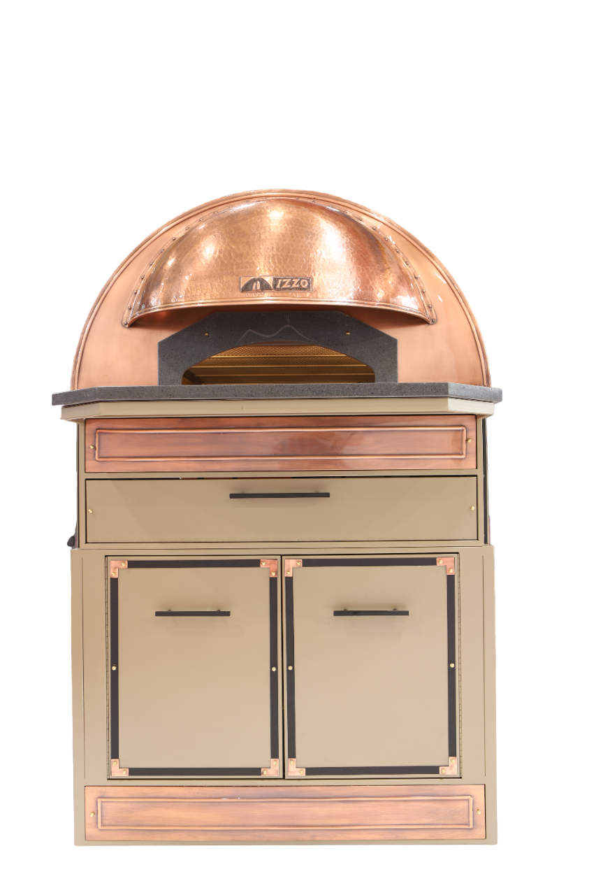 Diseñado y creado en Nápoles por la familia Izzo, el horno utiliza solo materiales y componentes de alta calidad para producir un horno que hornea pizza napolitana perfecta en 60 segundos una y otra vez. El horno de frente abierto está diseñado para ser una pieza central de una pizzería. Fue creado no solo para dar el factor sorpresa, sino también para poder hacer frente a los períodos de mayor actividad en un restaurante. Es perfecto para locales donde la extracción de hornos de gas o leña resulta costosa o problemática.